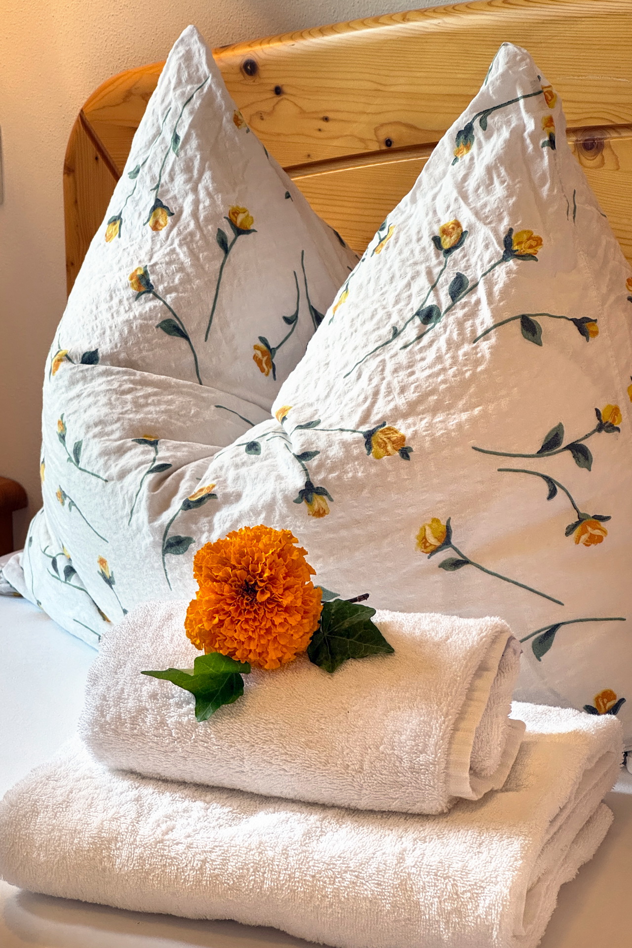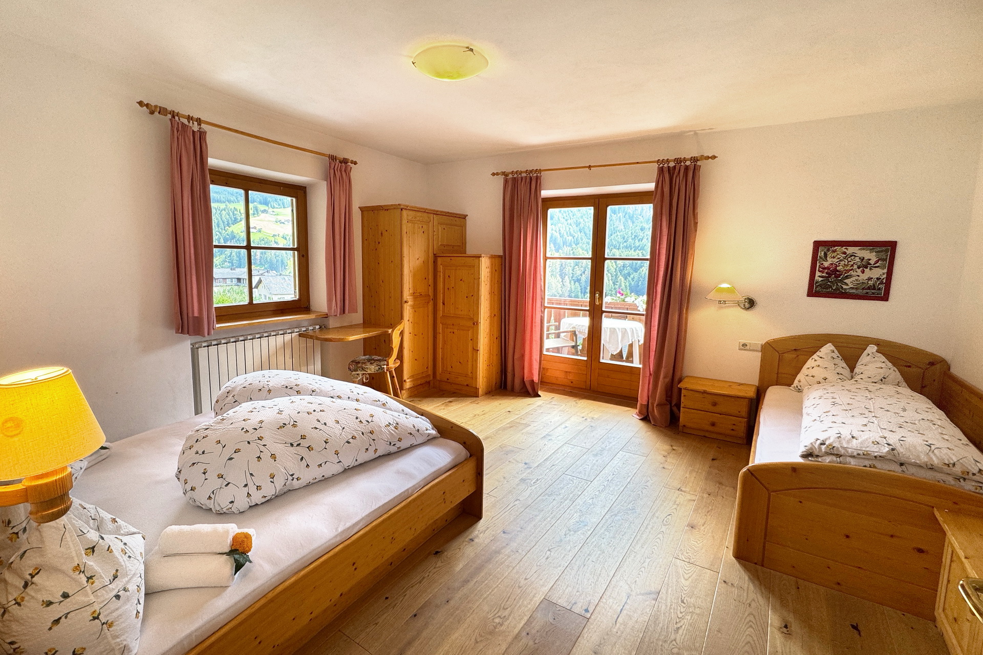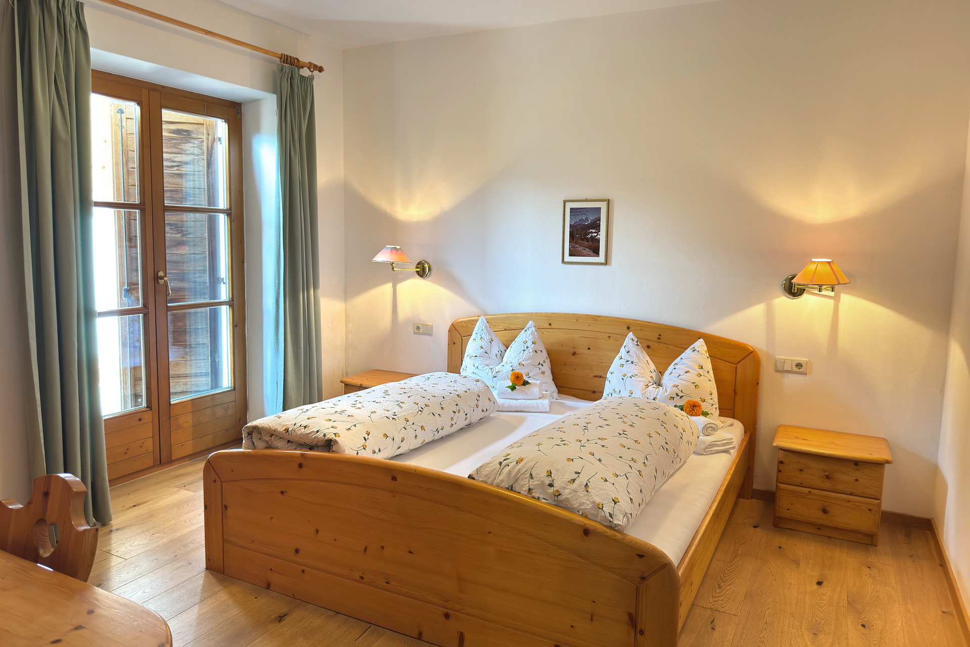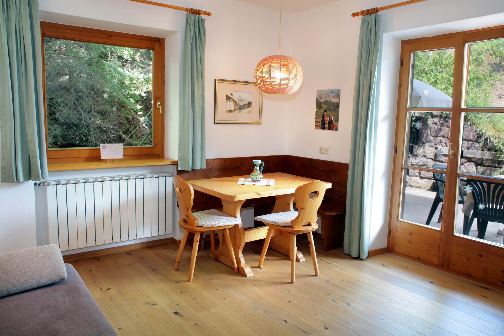 Gli appartamenti hanno una camera matrimoniale, soggiorno con divano, cucina moderna, WC indipendente, TV, balcone soleggiato verso sud da dove si vedono benissimo le nostre belle odle.